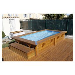 La piscine en bois octogonale allongée SUNWATER fabriquée par Ubbink est livrée en Kit complet (filtration à cartouches + pompe, échelles?). La piscine est conçue avec des matériaux résistants dans le temps, qui vous assurent une qualité et une durabilité avec une garantie de 15 ans. La structure est faite en Pin du nord et traité autoclave classe 4, cela assure à votre piscine une grande résistance aux attaques de la moisissure, d'insectes et de termites. Le bassin est prévu avec un berceau métallique qui accroit considérablement sa robustesse et sa résistance dans le temps. Dimensions extérieures : 3,50 x 2,00 x 0,71m. Dimensions intérieures : 3,00 x 1,50 x 0,71m. Cette piscine peut être installée hors-sol, semi-enterrée ou enterrée. Vous pouvez compléter votre achat par des bâches été et/ou hiver, des robots de nettoyages, une douche extérieure. Les piscines Ubbink vous offrent un rapport qualité-prix exceptionnel.Le plus de cette piscine est qu'une pompe à chaleur est fournie avec