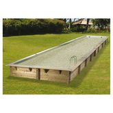 Ce kit piscine comprend de nombreux équipements de qualité: une structure en bois garantie 15 ans avec traitement autoclave classe 4 CTB+, une margelle double en pin ep. 27mm avec finitions aluminium anodisé, madriers d'une épaisseur de 45 mm, un liner 75/100 de couleur beige, 2 skimmers, 2 refoulements, sorties en PVC rigide et 25m de tuyau diam. 50mm ,un filtre à sable D600 avec vanne à 6 positions, un débit de 13m3/H, 100 kg de sable, une echelle de sécurité extérieure en bois et une echelle intérieure en inox, ainsi qu'un feutre de fond et parois. La piscine peut être enterrée uniquement.