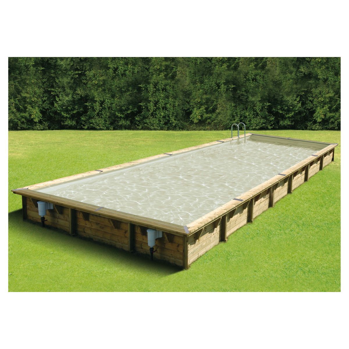 La piscine en bois rectangulaire Linéa fabriquée par Ubbink est livrée en Kit complet (filtration à sable + pompe, échelles…). Les piscines rectangulaires sont particulières, car elles subissent une pression d'eau plus importante. C'est pour cela que les piscines Ubbink ont un système de renf