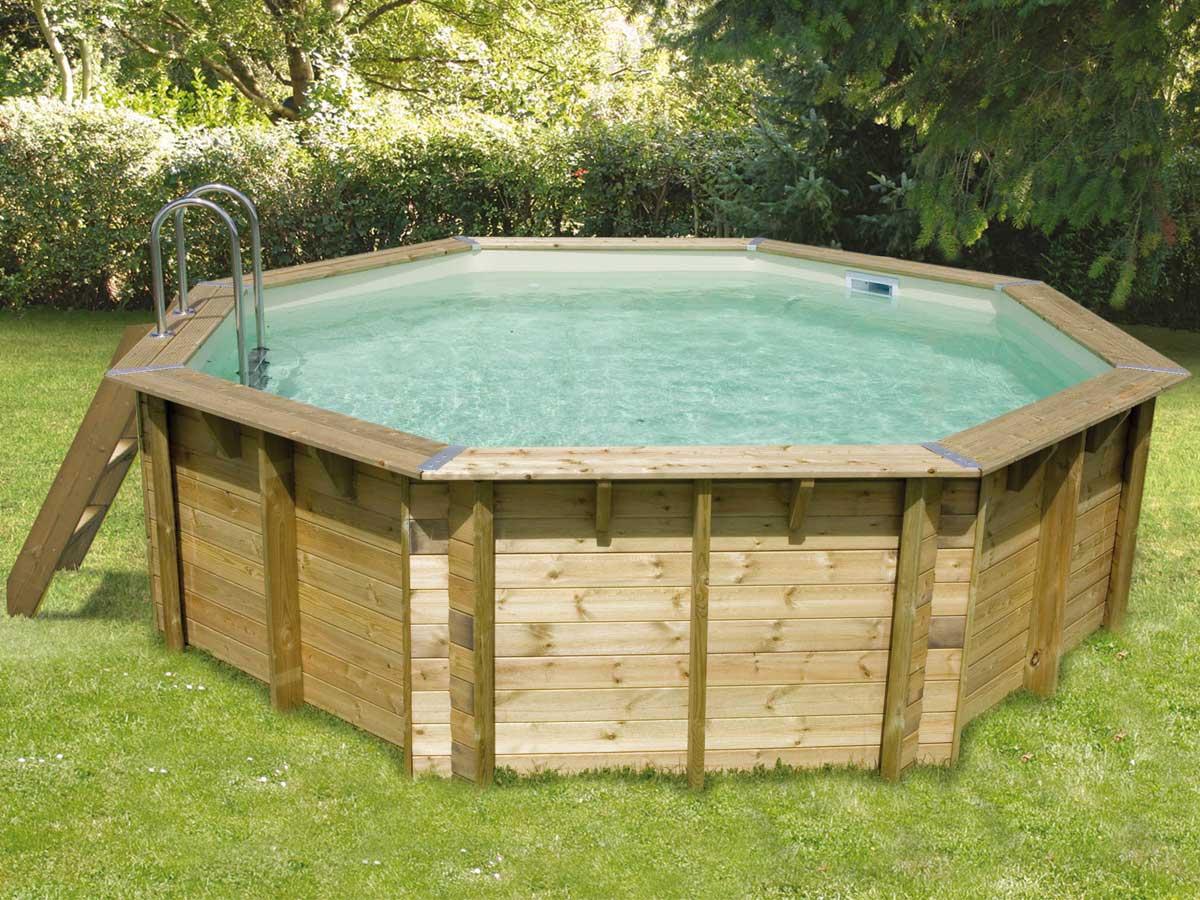 La piscine en bois Océa Ubbink est livrée toute équipée avec échelle, escalier, et système de filtration à sable complet