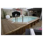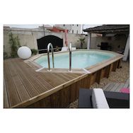 piscine en bois octogonale Océa fabriquée par Ubbink est livrée en Kit complet (filtration à sable + pompe, échelles…). Avec ses 120 cm de hauteur, elle est un modèle idéal pour les petits comme pour les grands. La piscine est conçue avec des matériaux résistants dans le temps, qui vous assurent une qualité et une durabilité avec une garantie de 15 ans. La structure est faite en Pin du nord et traité autoclave classe 4, cela assure à votre piscine une grande résistance aux attaques de moisissure, d'insectes et de termites. Dimensions extérieures : 5,50 x 3,55 x 1,30 cm . Dimensions intérieures : 5,00 x 3,05 x 1.30 cm. Cette piscine peut être installée hors-sol, semi-enterrée ou enterrée. Ce modèle de piscine est disponible avec un liner bleu ou beige au choix. Vous pouvez compléter votre achat par des bâches été et/ou hiver, des robots de nettoyages, une douche extérieure. Les piscines Ubbink vous offrent un rapport qualité-prix exceptionnel.