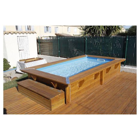 Piscine hors sol bois rectangulaire - 200x350x71cm -Liner Bleu - SUNWATER