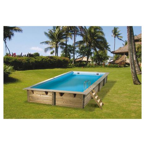 Piscine hors sol bois rectangulaire - 350x650x140cm - Liner Bleu - LINEA