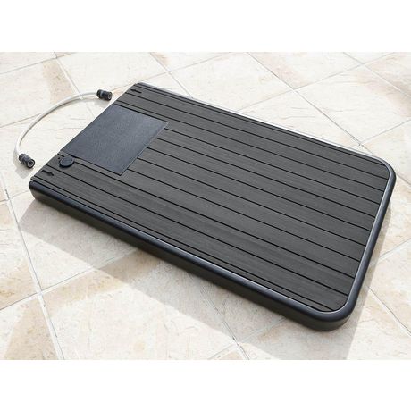 Plancher pour douche de piscine solaire UbbinkMatériel EVA (résine époxy) pour une surface anti-dérapante Coloris anthraciteCapacité du réservoir d'eau 20 LMolette eau chaude/froide Inclus accessoires de raccordementConvient à tous types de douches Ubbink (sauf 7505512 Solaris Premium XL) Dimensions
