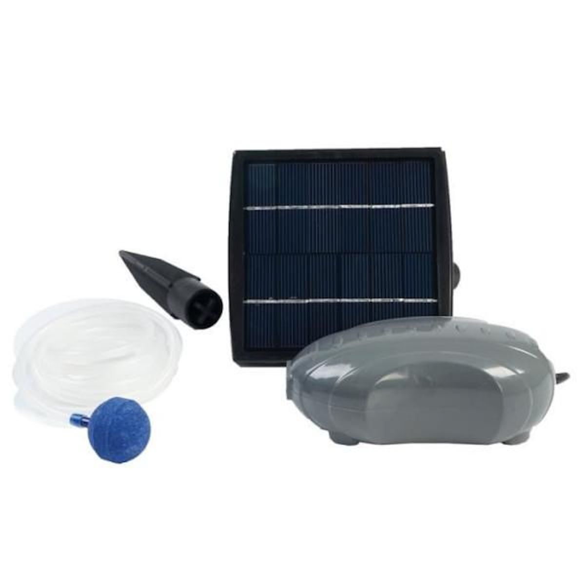 Pompe a air solaire Air Solar120 - Systeme d'oxygénation du Bassin préfabriqué comprenant un panneau solaire 12 x 12 x 2cm - Avec support, une pompe Air SOLAR 100 débits 120l/h, tuyau de 2 m, une pierre effervescente - Fonctionne par alimentation directe sans accumulateur
