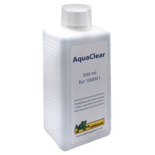En savoir +Le traitement de l'eau de l'etang Aqua Clear de la marque Ubbink est un produit liquide de soin d'eau de bassin pour aider a retrouver rapidement une qualite d'eau claire.