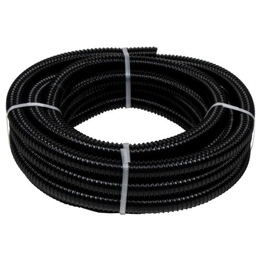 Ce tuyau a pression spirale renforce de 25 mm de diametre, noir et resistant aux UV, de la marque Ubbink, convient pour raccorder des filtres a une pompe de bassin.