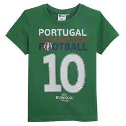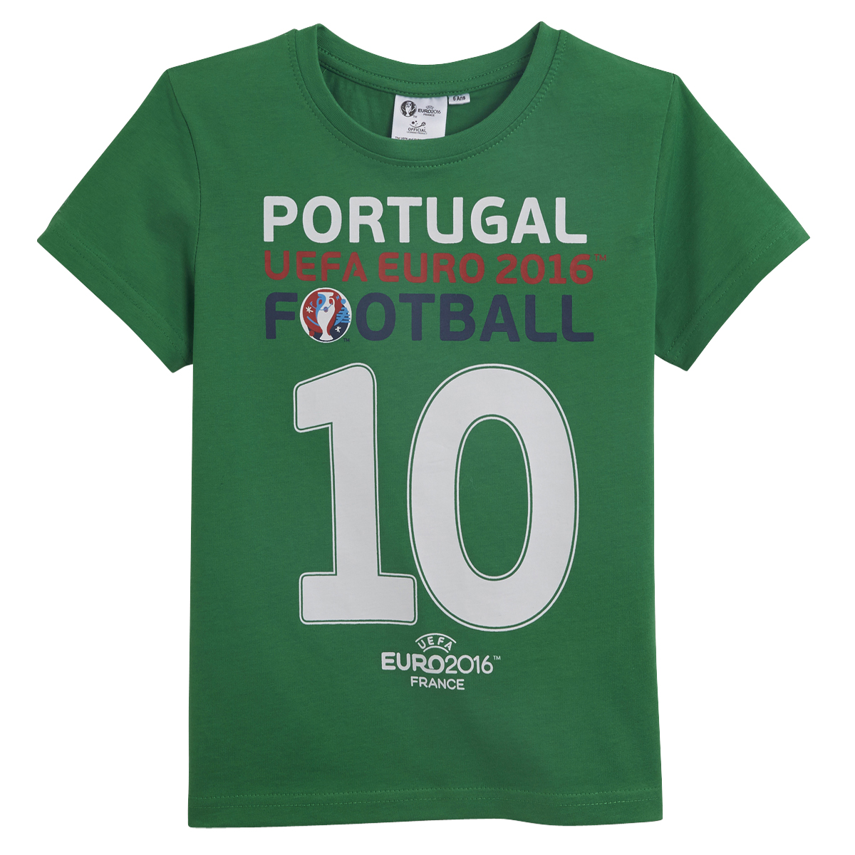 En savoir +Ce tee-shirt Euro 2016 Portugal plaira aux fans de football. Il est doux et confortable. 100% coton. Col rond, manches courtes, imprimé sur le devant. Ce t-shirt Portugal Euro 2016 est lavable en machine à 40°.