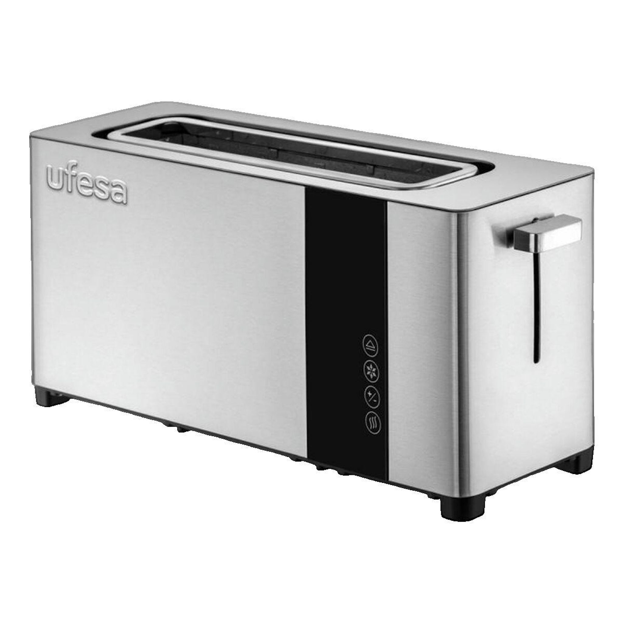 Découvrez le grille-pain Ufesa Plus Deluxe 1050W, un appareil élégant en acier inoxydable avec une fente longue pour griller facilement des tranches de pain plus larges. Il dispose de 6 niveaux de brunissage pour une cuisson personnalisée, ainsi que des fonctions de décongélation et de réchauffement