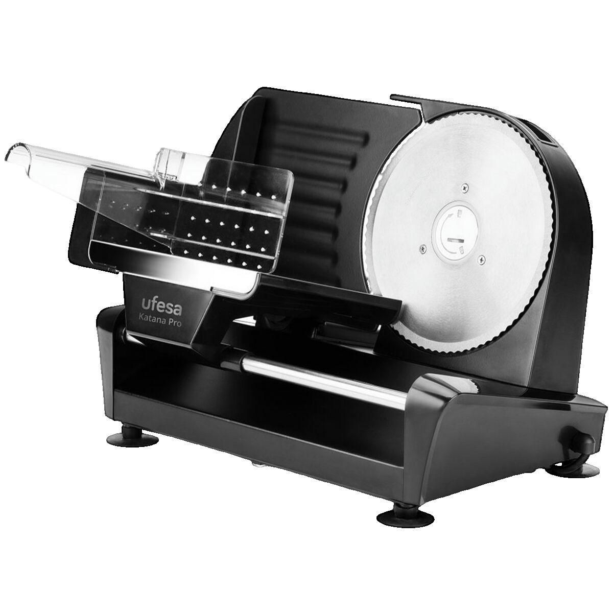 La trancheuse électrique UFESA Katana Pro est idéale pour préparer des plats à base de charcuterie et fromages. Elle dispose d'une puissance de 200W et d'une lame en acier inoxydable pour une découpe précise. L'épaisseur de coupe est réglable de 0 à 20 mm, permettant une grande flexibilité selon vos