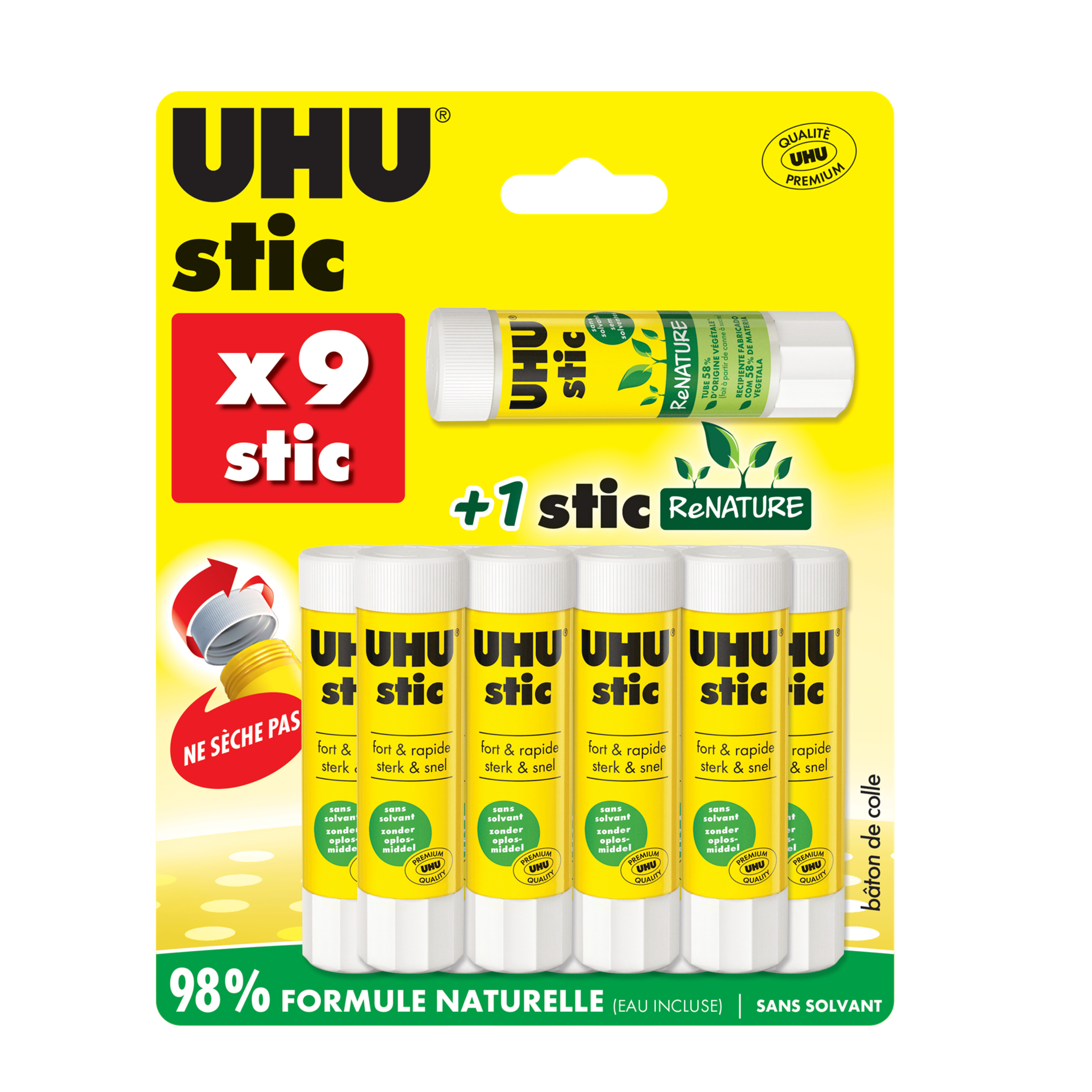 Le célèbre bâton de colle « Fabriqué en Allemagne » pourvu d'un bouchon à visser exclusif qui garantit que la colle ne dessèche pas. La formule est composée à 98 % d'ingrédients naturels (y compris l'eau) et est exempte de solvant. Colle solidement, rapidement et durablement, elle s'étale régulièrement, est hautement efficace et se lave à froid.