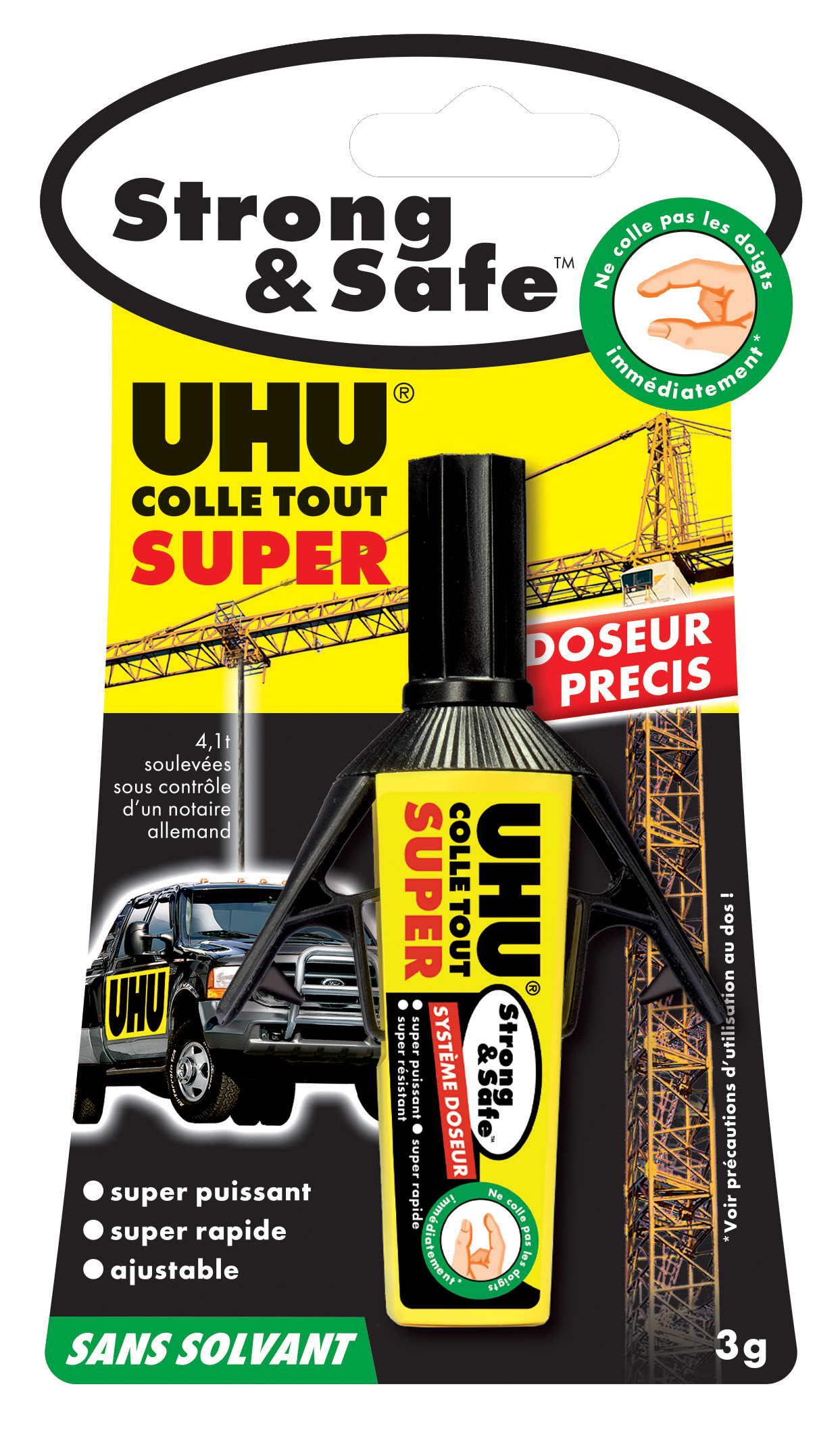 En savoir +Tous les avantages de la formule brevetée Strong & Safe dans un système doseur NOUVELLE TECHNOLOGIE ; Facile et propre : débit obtenu sur simple pression sur les ailettes. Précis et économique : dosage exact de la quantité de colle souhaitée. Flacon rigide : ne se perce pas, s'emporte partout