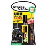 Tous les avantages de la formule brevetée Strong & Safe dans un système doseur NOUVELLE TECHNOLOGIE ; Facile et propre : débit obtenu sur simple pression sur les ailettes. Précis et économique : dosage exact de la quantité de colle souhaitée. Flacon rigide : ne se perce pas, s'emporte partout