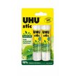 Lot de 2 stics blanc 21g Renature. UHU Stic pour toute la famille. Le célèbre bâton de colle «Fabriqué en Allemagne» pourvu d’un bouchon à visser exclusif qui garantit que la colle ne dessèche pas. La formule est composée à 98% d’ingrédients naturels (eau incluse) et est exempte de solv