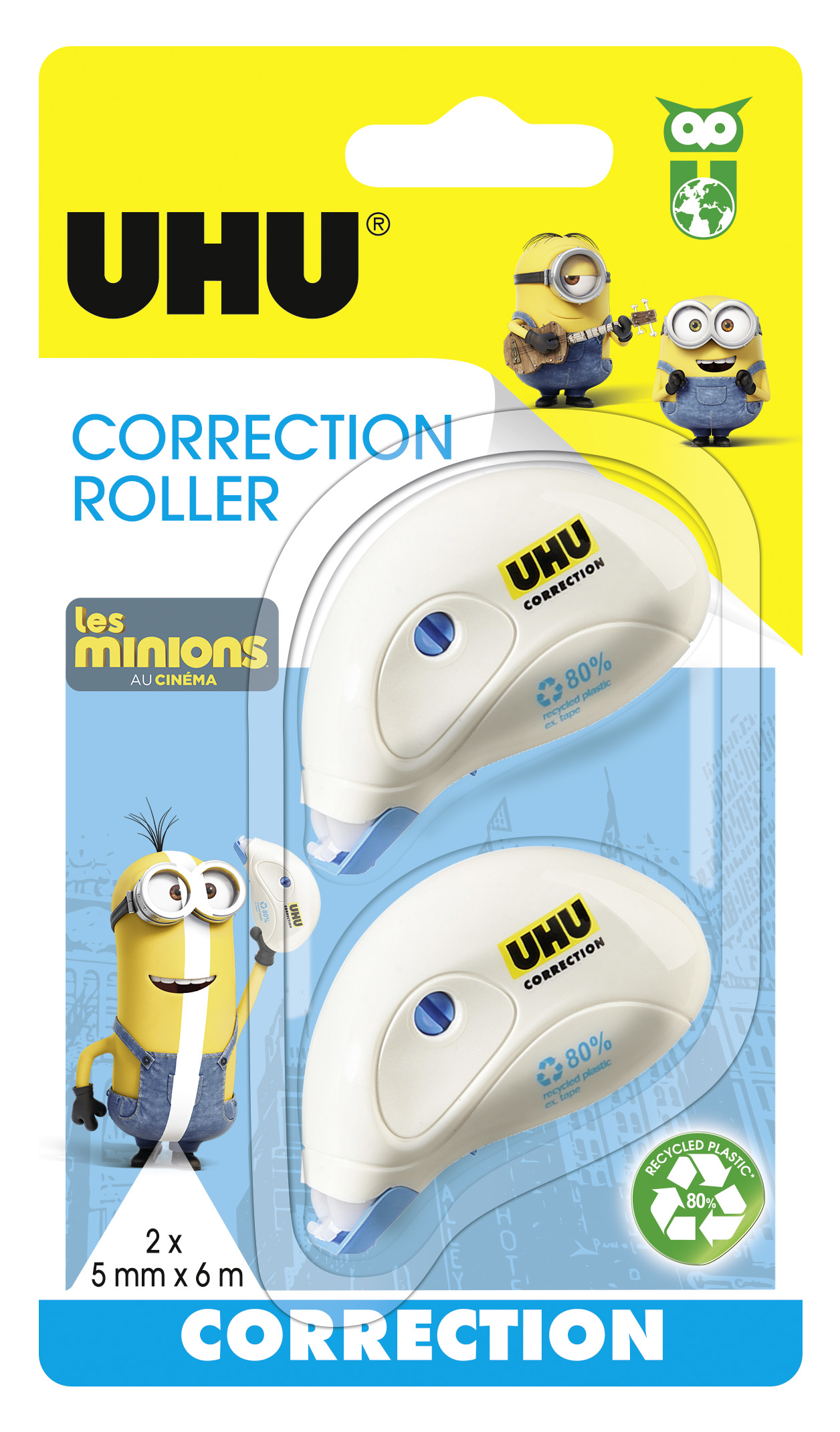 Lot de 2 minis rollers correcteurs 6mx5mm Les Minions
