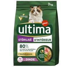 ULTIMA croquettes Chat Stérilisé d'intérieur 3kg