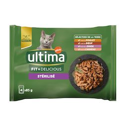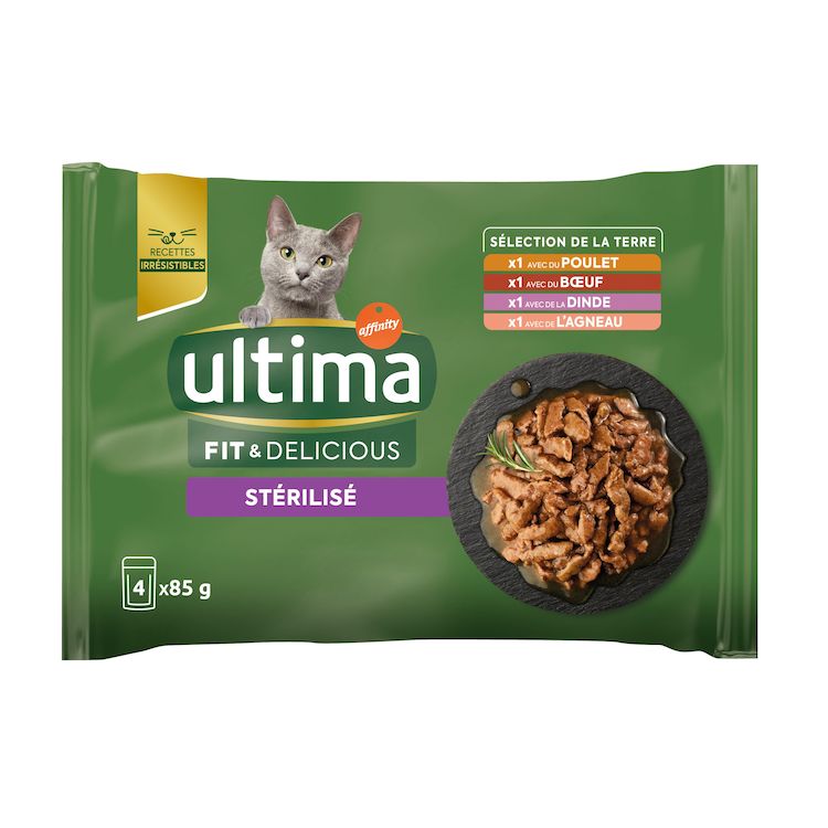 Ultima Fit & Delicious, des recettes savoureuses dans une sauce délicieuse qui aident votre chat stérilisé à contrôler son poids et à rester agile.