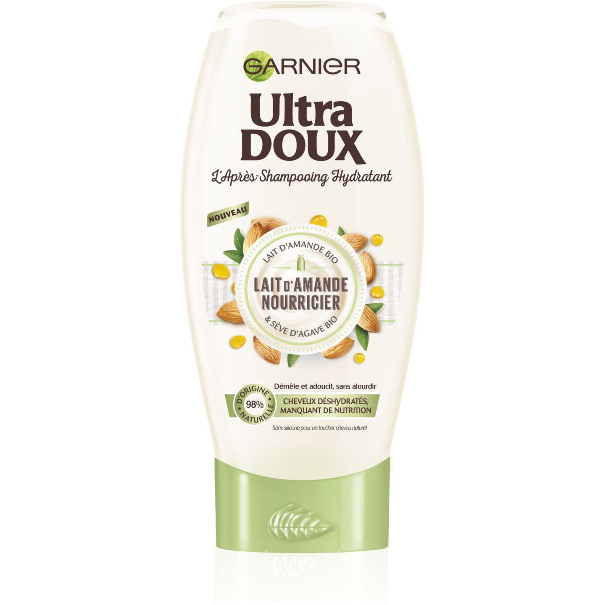 Après-Shampooing Lait d’Amande Nourricier, la nouvelle recette de nutrition saine et gourmande de Garnier Ultra DOUX pour hydrater les cheveux sans les alourdir. Résultat : hydratés et pleins de vie, vos cheveux sont immédiatement démêlés sans être alourdis. Ils rayonnent de vitalité ! Jour après jour, ils sont plus soyeux et incroyablement doux au toucher.