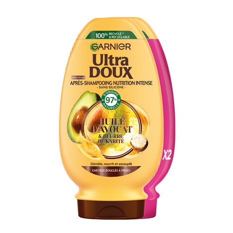 Garnier, Ultra Doux, Avocat Karité, Après Shampoing, Après Shampooing, Démêlant, Lot de 2, 250ml
