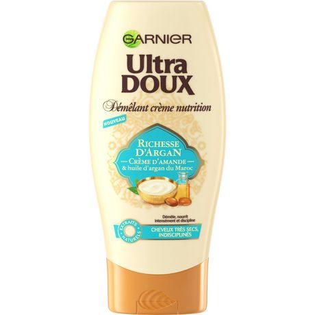 Découvrez la nouvelle recette de nutrition riche de Garnier Ultra DOUX pour les cheveux très secs et indisciplinés. Formule sans paraben. Résultat : intensément nourris et immédiatement démêlés, vos cheveux sont souples et infiniment doux au toucher. Ils sont plus faciles à coiffer et resplendissent de beauté !