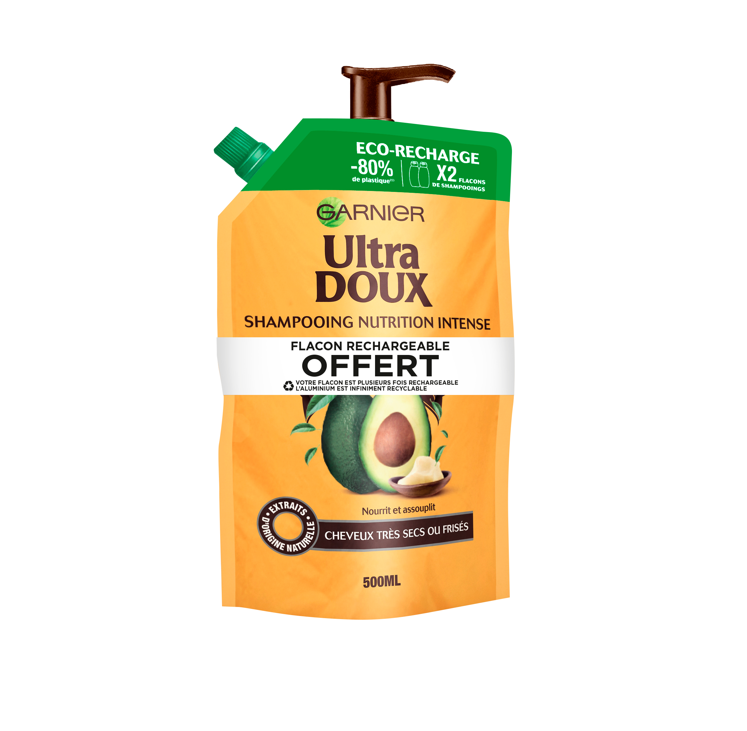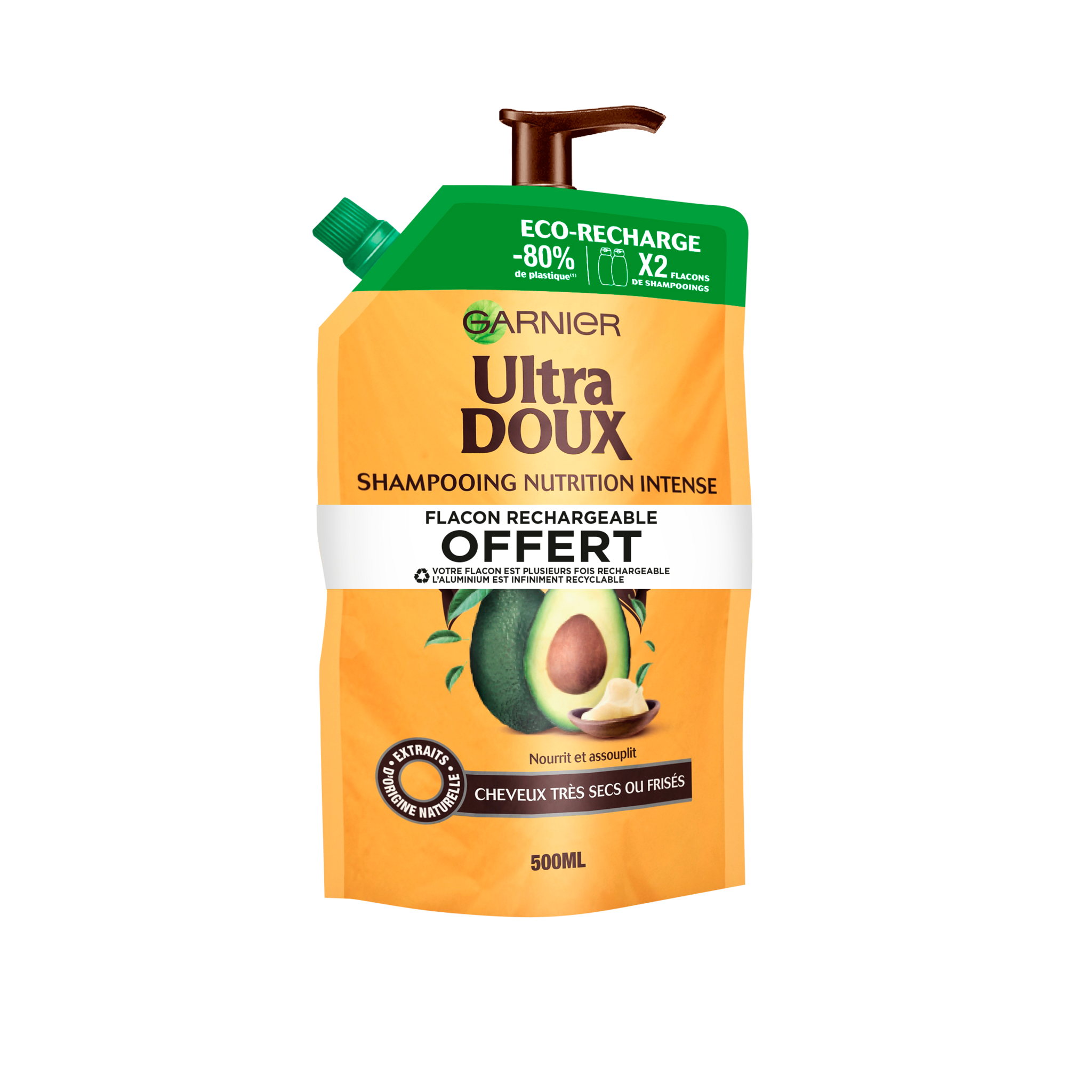 Shampoing nutrition intense cheveux très sec ou frisées écorecharge et flacon