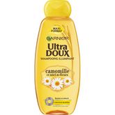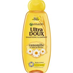 Garnier Ultra Doux Camomille Shampooing à la Camomille et Miel de Fleurs Maxi Format 400 ml Shampooing illuminant sans silicone et sans paraben Garnier Ultra DOUX à la Camomille et au Miel de Fleurs pour cheveux blonds. Résultat : shampooing après shampooing, vos cheveux sont nourris et réparés, ils retrouvent une douceur et une brillance incomparables. Votre couleur est éclatante et incroyablement lumineuse.