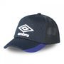 Casquette trucker intemporelle de couleur bleu qui lui confère un look altique, sportif et dynamique. À l'avant le logo UMBRO est brodé en relief, cette casquette est recouverte d'un motif en forme de losange, à l'arrière le filet offre un grand confort en été.Cette casquette homme est ajustable grâ
