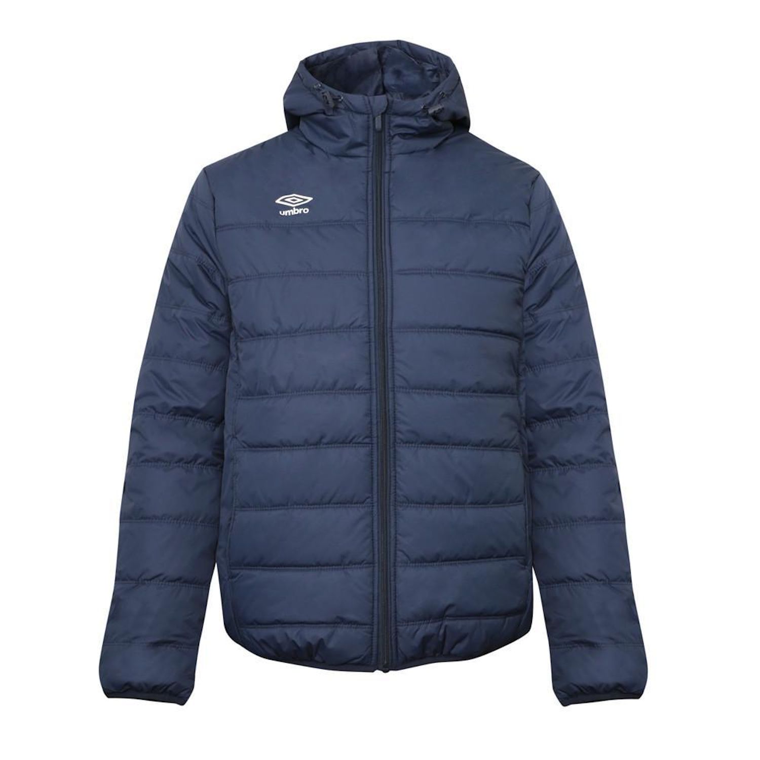 En savoir +Doudoune pour homme de la marque Umbro ! Couleur : Marine Coupe altique Effet matelassé Capuche avec élastique de serrage Logo Umbro brodé Poche latérales boutonnées Composition : 100% polyester