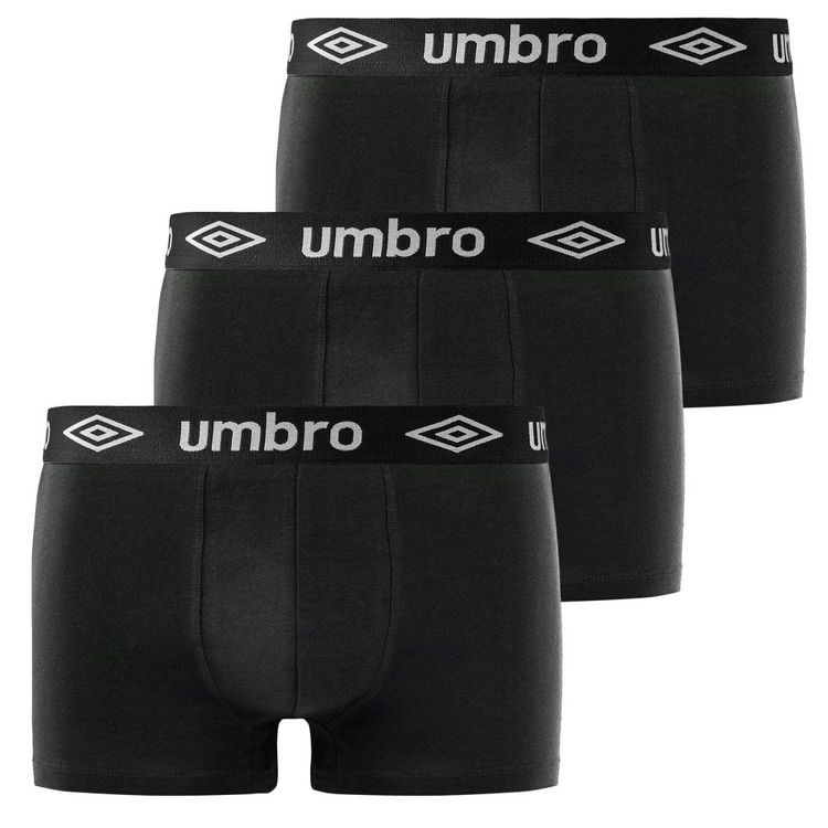 Pack de 3 boxer unis pour Homme de la marque Umbro Matière : 100% Coton Un lot de 3 boxer en coton pour un confort assuré ! Avec Umbro à vos côtés, vous aurez un look sobre qui ira parfaitement avec tous vos habits. Le noir uni est un coloris indémodable qui sera toujours dans les tendances !