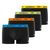 Ce lot de 4 boxers homme propose de couleur noir, des sous-vêtements homme avec des ceintures colorées bleu, jaune, vert et orange qui assurent un bon maintien, et une bonne liberté de mouvement.