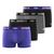 Ce lot de 4 boxers homme propose des couleurs noir, bleu et gris anthracite, des sous-vêtements homme avec des ceintures coloré bleu et rouge qui assurent un bon maintien, et une bonne liberté de mouvement.