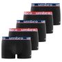 Un lot de 5 boxers Umbro confortable en coton ! Des boxers avec des élastiques colorés vous attendent ! Faites confiance à la qualité Umbro. C'est le moment ou jamais de renouveler votre vieille collection de caleçons et de sous-vêtements !