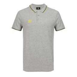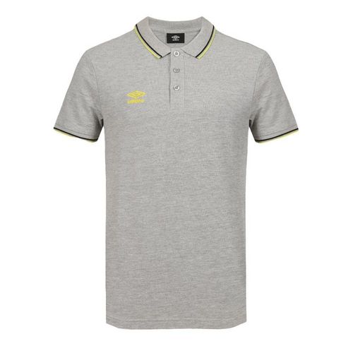 Optez pour ce polo de la marque Umbro !Coloris : gris clair chinéCol montantFendu sur les côtésComposition : 65% Polyester, 35% CotonLiserés contrastésBoutons altiques au colCoupe cintrée