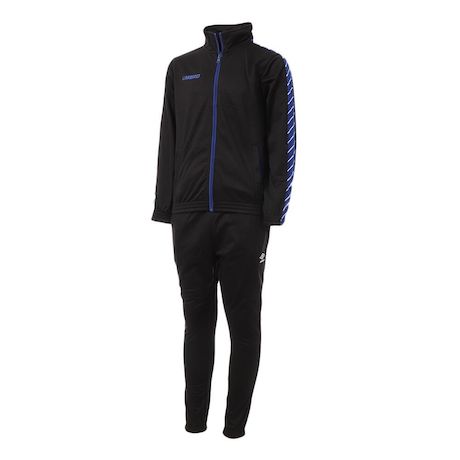 Optez pour ce survêtement de la marque Umbro ! Coloris : noir, bleu, blanc Manches longues Col montant Composition : 100% polyester