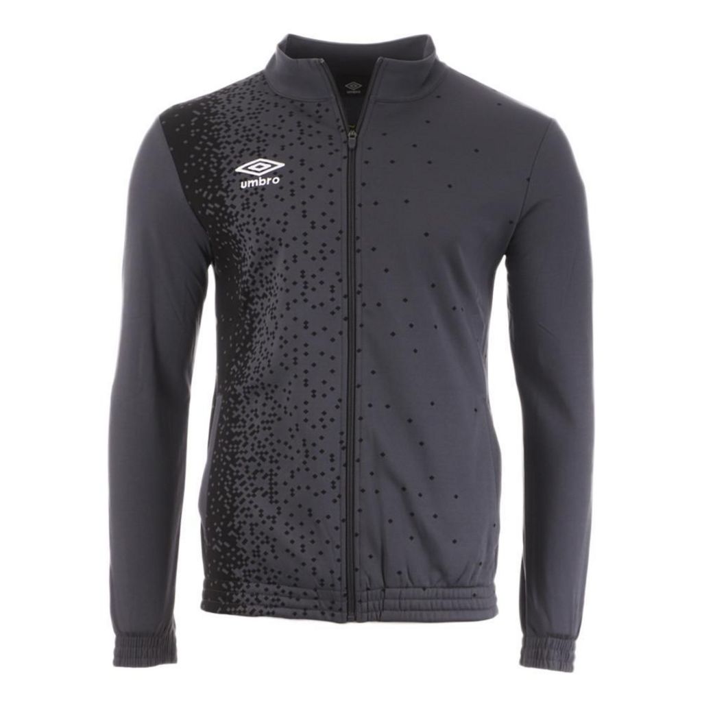 Optez pour la veste de la marque UMBRO ! Coloris : Gris Col montant Manches longues Matière respirante Détail imprimé sur l'avant Logo Umbro brodé Zip sur toute la longueur Composition : 100% Polyester