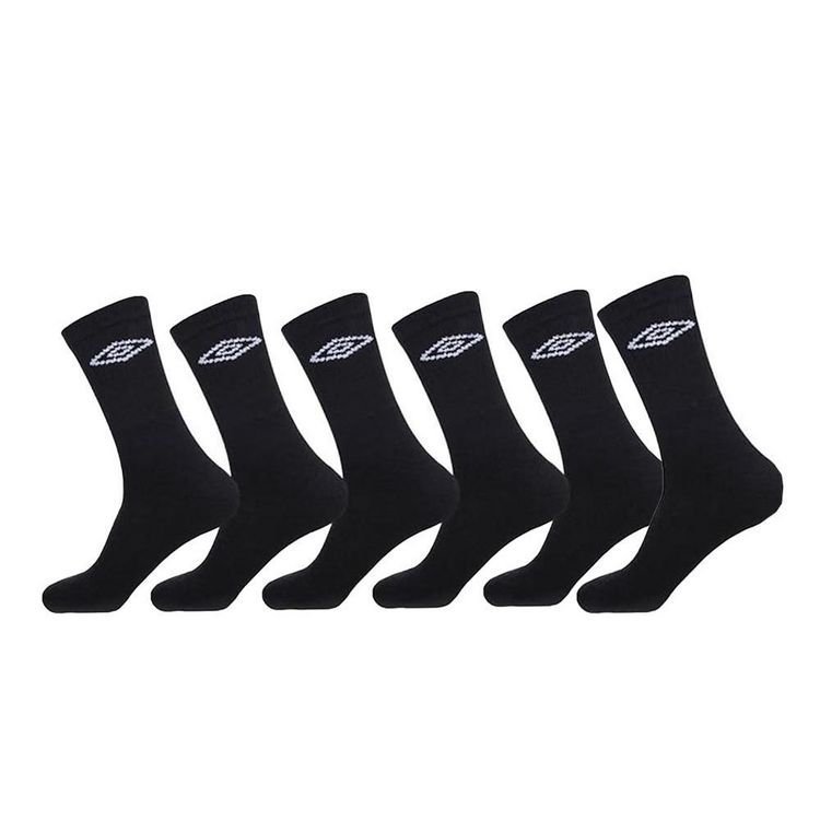 Optez pour les chaussettes de la marque UMBRO !Coloris , NoirLot 6 pairesLogo sur impriméComposition : 69% Coton 29% Polyester 1% élasthanne 1% Acrylique