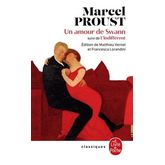 Deuxième partie de Du côté de chez Swann, paru en 1913 et parfois pris à tort pour le volume inaugural d'A la recherche du temps perdu, Un amour de Swann s'est imposé dans la seconde moitié du XXe siècle comme une oeuvre à part entière. Proust, qui avait lui-même qualifié ce chapitre de plus public que Combray , y raconte l'histoire d'amour ternie par la souffrance et la jalousie de Charles Swann et d'Odette de Crécy. D'abord indifférent à l'égard de celle que le grand monde voit comme une cocotte , Swann finit par s'éprendre d'Odette jusqu'à l'obsession et connaître les plus sombres tourments de l'amour malheureux. Dans ces pages où la justesse du propos et la finesse des analyses ne manquent pas de surprendre, Proust esquisse derrière le personnage de Swann un double de son narrateur, mais nous livre aussi une profonde réflexion sur le sentiment amoureux, le désir, la jalousie, non sans railler la société bourgeoise de son époque.