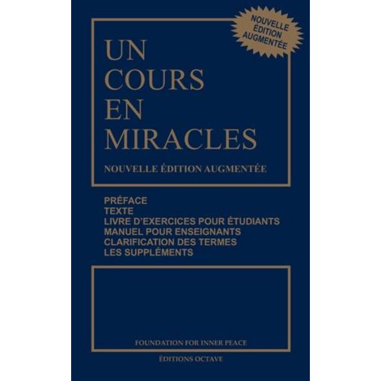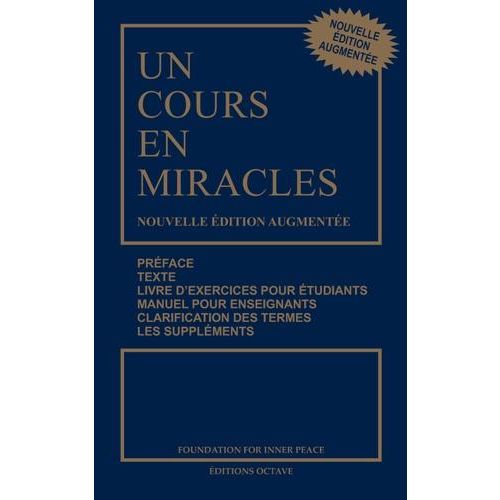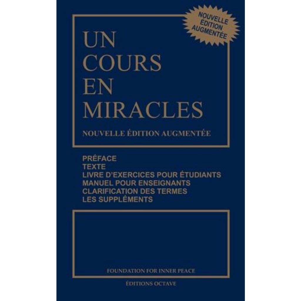 Un cours en miracles se présente comme un véritable outil d'enseignement, en trois volumes : texte, livre d'exercices pour étudiants et manuel pour enseignants. Il nous propose un enseignement spirituel totalement nouveau et fascinant, où les grands thèmes de la religion chrétienne sont revisités au point de ressembler davantage au bouddhisme zen ou à l'hindouisme. C'est aussi un livre pratique , dans la mesure où la voie qu'il propose peut et doit s'appliquer dans notre vie quotidienne et dans toutes nos relations. Un miracle est un changement intérieur, un renversement dans notre façon de voir le monde. Par le miracle, nous apprenons à pardonner , et en pardonnant à autrui, nous apprenons que nous sommes pardonnés