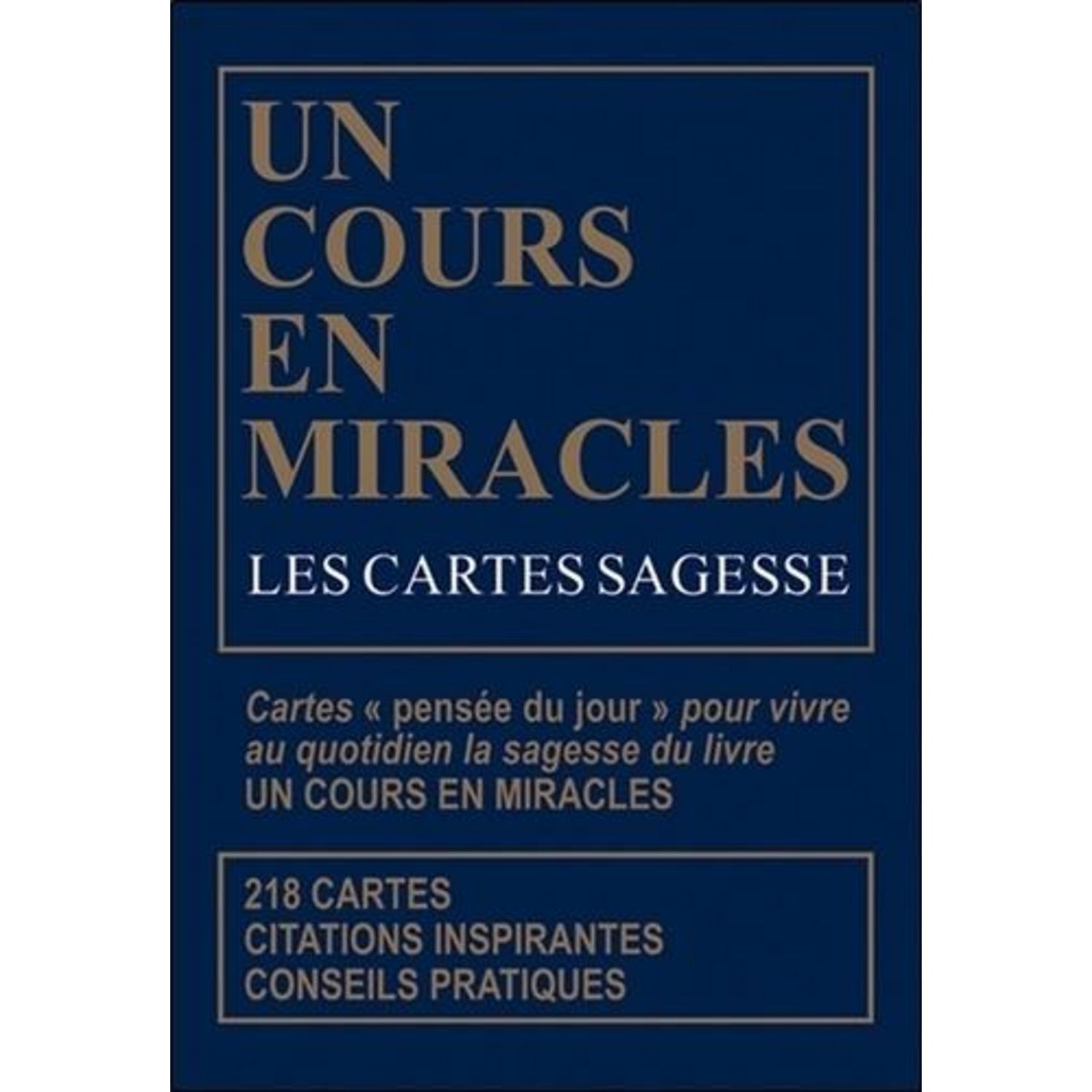 Ce magnifique boîtier contenant plus de 218 citations vous permettra de garder la sagesse d'Un cours en miracles à portée de main. Pigez une carte et faites-en votre pensée du jour. Offrez-en une à un proche ou à un ami.Auteur : Octave éditions Editeur : OCTAVE EDITIONSDate de parution : 08/09/2020N