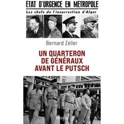 L'histoire méconnue des quatre généraux putschistes d'Alger avant 1961. 22 avril 1961 : les généraux Challe, Zeller, Jouhaud et Salan déclenchent un putsch à Alger. Le lendemain, le général de Gaulle s'adresse à la nation : Un pouvoir insurrectionnel s'est établi en Algérie [... ]. Ce pouvoir a une apparence : un quarteron de généraux en retraite. Il a une réalité : un groupe d'officiers, partisans, ambitieux et fanatiques. Ce groupe et ce quarteron possèdent un savoir-faire expéditif et limité. Si l'événement a été largement décrit, les motivations des putschistes sont restées dans le flou. Comment ces généraux, appelés aux plus hautes responsabilités par le général de Gaulle à l'issue de carrières menées sous le signe de la discipline et du service, ont-ils pu être amenés à déclencher un tel mouvement, totalement étranger à la tradition militaire française ? L'auteur, s'appuyant sur des sources non exploitées à ce jour et ayant eu accès aux archives privées des protagonistes de l'événement, restitue leurs trajectoires depuis leur engagement dans l'armée jusqu'au sommet de la hiérarchie militaire et fournit les pistes qui expliquent comment, en dépit de leurs différences de parcours et de tempérament, ils ont décidé de franchir le Rubicon. Ce faisant, il restitue tout un pan de l'histoire militaire française, de la guerre de 1914 - à laquelle ont participé Zeller et Salan - à celle d'Algérie. Un cheminement à nul autre pareil pour ces quatre serviteurs de la France, des champs de bataille à la prison de Tulle. Un ouvrage édifiant et nécessaire.