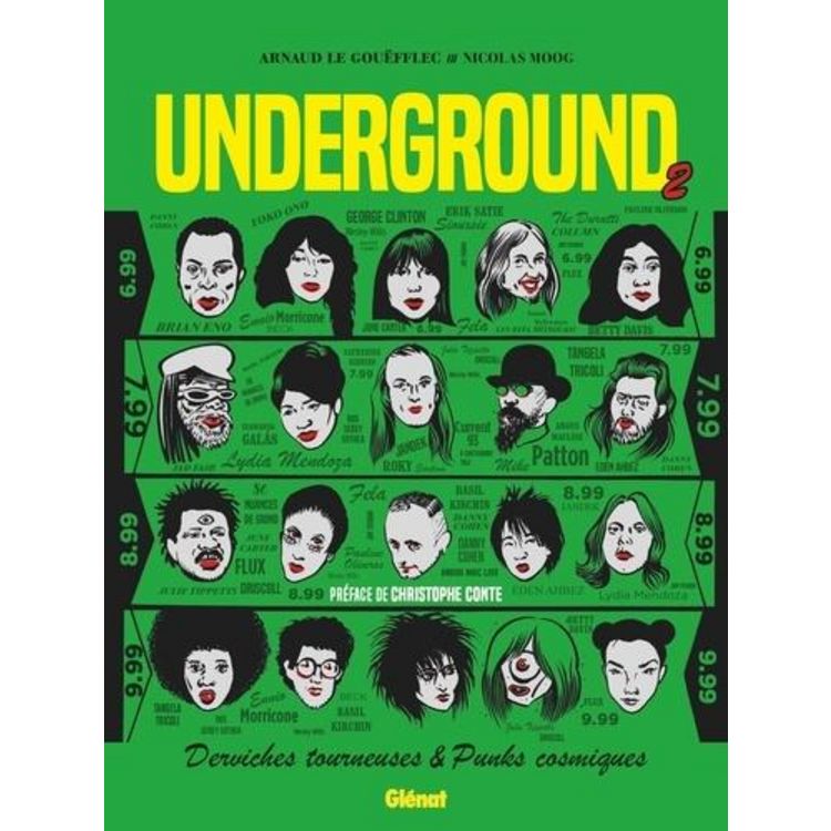 Derviches Tourneurs & punks cosmiques Ces femmes et ces hommes sont souvent méconnus du grand public, pourtant leurs oeuvres ont bouleversé l'Histoire de la musique. Leur influence a été déterminante, comme dans le cas d'Erik Satie, excentrique à la postérité considérable, ou de Yoko Ono, dont la démarche expérimentale impactera jusqu'à la pop music et les mass media. Pour remettre sur le devant de la scène des artistes dont la popularité n'égale pas l'influence, Arnaud Le Gouëfflec et Nicolas Moog dressent une trentaine de portraits de ces fabuleux créateurs. Parmi eux, on (re)découvre le génie de Beck, transfuge pop de l'underground américain, et de George Clinton, l'un des pères fondateurs du funk. Les femmes ont également toute leur place dans la lumière : on redécouvre l'énergie de Betty Davis, le génie sinueux des Rita Mitsouko, les textes et l'humour subtil d'Anne Sylvestre, le destin tragique de la starlette japonaise Jun Togawa, sans oublier la trajectoire de l'icône pop planétaire Björk. Tous ces artistes ont un dénominateur commun : l'underground, qu'ils en viennent et qu'ils s'en soient détachés à la faveur du succès, ou qu'ils y aient déployé l'ensemble de leur oeuvre. Bien que conçu à l'instar du volume 1, ce second ouvrage se divise entre obscurs, voire très obscurs (Current 93, eden ahbez, Roky Erickson, The Durutti Column, Basil Kirchin...) et personnalités plus connues (Siouxsie, Fela, Ennio Morricone, Kate Bush...), tout en montrant leur facette expérimentale.