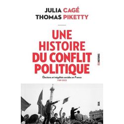 Qui vote pour qui et pourquoi ? Comment la structure sociale des électorats des différents courants politiques en France a-t-elle évolué de 1789 à 2022 ? En s'appuyant sur un travail inédit de numérisation des données électorales et socio-économiques des 36 000 communes de France couvrant plus de deux siècles, cet ouvrage propose une histoire du vote et des inégalités à partir du laboratoire français. Au-delà de son intérêt historique, ce livre apporte un regard neuf sur les crises du présent et leur possible dénouement. La tripartition de la vie politique issue des élections de 2022, avec d'une part un bloc central regroupant un électorat socialement beaucoup plus favorisé que la moyenne - et réunissant d'après les sources ici rassemblées le vote le plus bourgeois de toute l'histoire de France -, et de l'autre des altes populaires urbaines et rurales divisées entre les deux autres blocs, ne peut être correctement analysée qu'en prenant le recul historique nécessaire. En particulier, ce n'est qu'en remontant à la fin du 19e siècle et au début du 20e siècle, à une époque où l'on observait des formes similaires de tripartition avant que la bipolarisation ne l'emporte pendant la majeure partie du siècle dernier, que l'on peut comprendre les tensions à l'oeuvre aujourd'hui. La tripartition a toujours été instable alors que c'est la bipartition qui a permis le progrès économique et social. Comparer de façon minutieuse les différentes configurations permet de mieux envisager plusieurs trajectoires d'évolutions possibles pour les décennies à venir. Une entreprise d'une ambition unique qui ouvre des perspectives nouvelles pour sortir de la crise actuelle. Toutes les données collectées au niveau des quelques 36 000 communes de France sont disponibles en ligne en accès libre sur le site unehistoireduconflitpolitique. fr, qui comprend des centaines de cartes, graphiques et tableaux interactifs auxquels le lecteur pourra se reporter afin d'approfondir ses propres analyses et hypothèses. Julia Cagé est professeure à Sciences Po Paris et lauréate du Prix du meilleur jeune économiste (2023). Thomas Piketty est directeur d'études à l'Ecole des hautes études en sciences sociales et professeur à l'Ecole d'économie de Paris. Ils signent ici leur premier livre en commun.