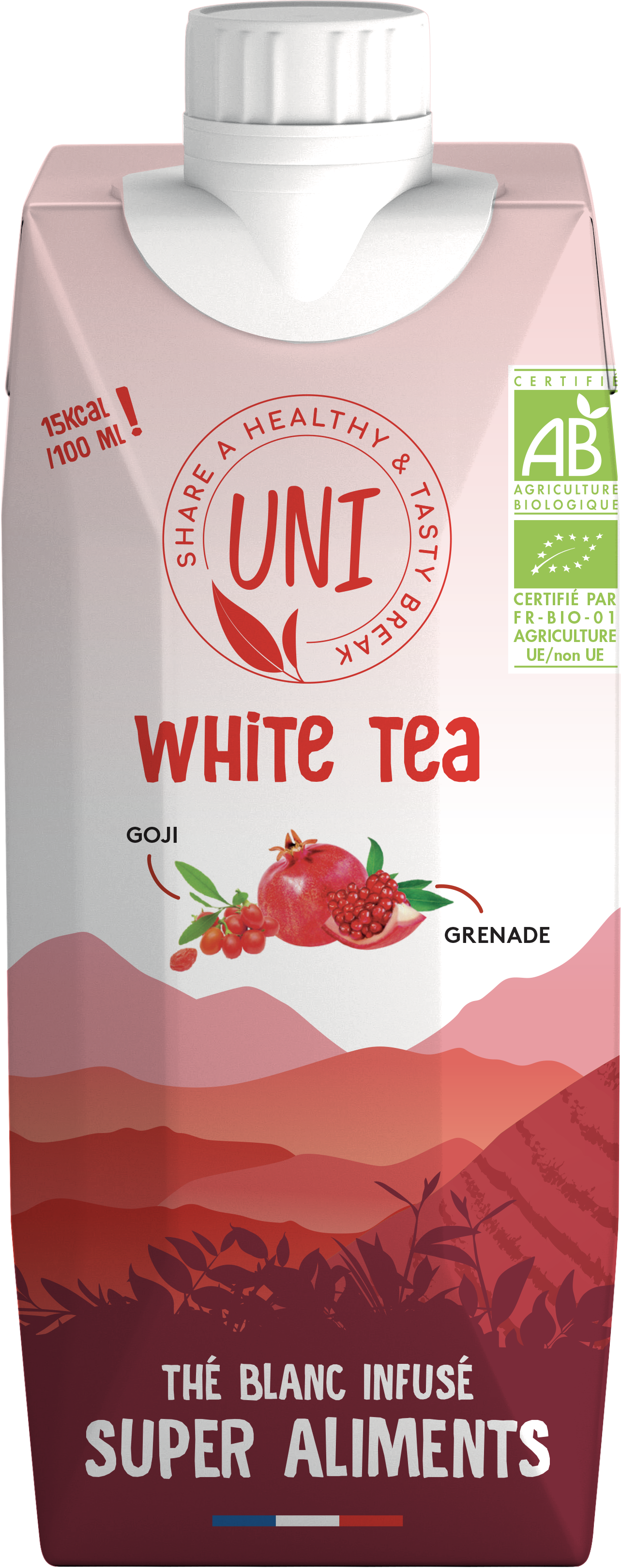 thé blanc infusé bio, purs jus de goji, purs jus de grenade