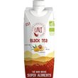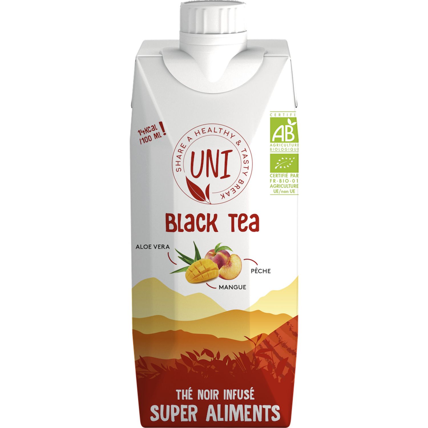 thé noir infusé bio , pêche bio, mangue bio, pur jus d'aloe vera bio
