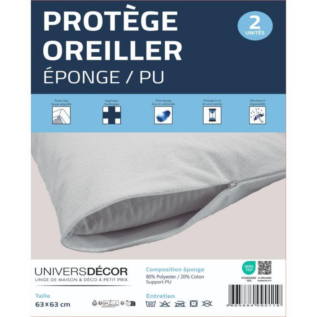 - Lot de 2 protèges oreiller éponge imperméable 63 x 63 cm