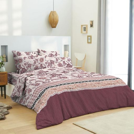 Pack complet housse de couette réversible pour lit 180 x 200 cm King size Cashemire bordeaux
