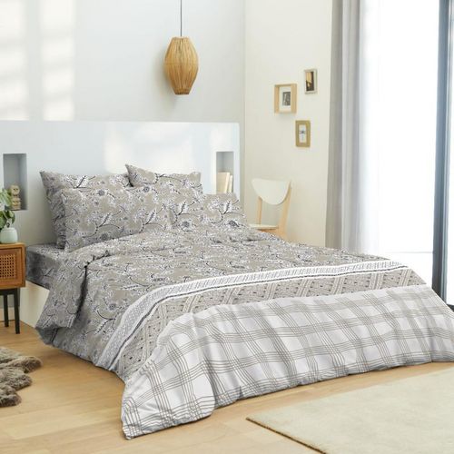 Pack complet housse de couette réversible pour lit 180 x 200 cm King size Floral taupe