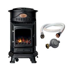 Poêle à gaz 3,4KW NOIR Fonte Véritable Effet feu de bois + Tuyau gaz + Détendeur butane Provence UNIVERSAL