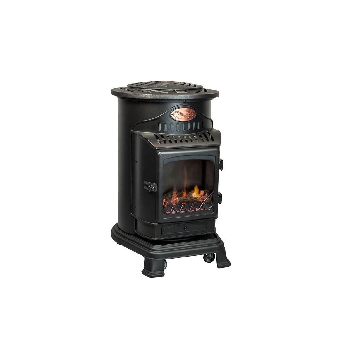 Poêle à gaz Fonte véritable 3,4KW noir Effet feu Provence UNIVERSAL