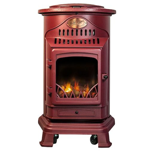 Poêle à gaz Fonte véritable 3.4KW Rouge Chauffage d'appoint au gaz Effet feu de bois Provence UNIVERSAL